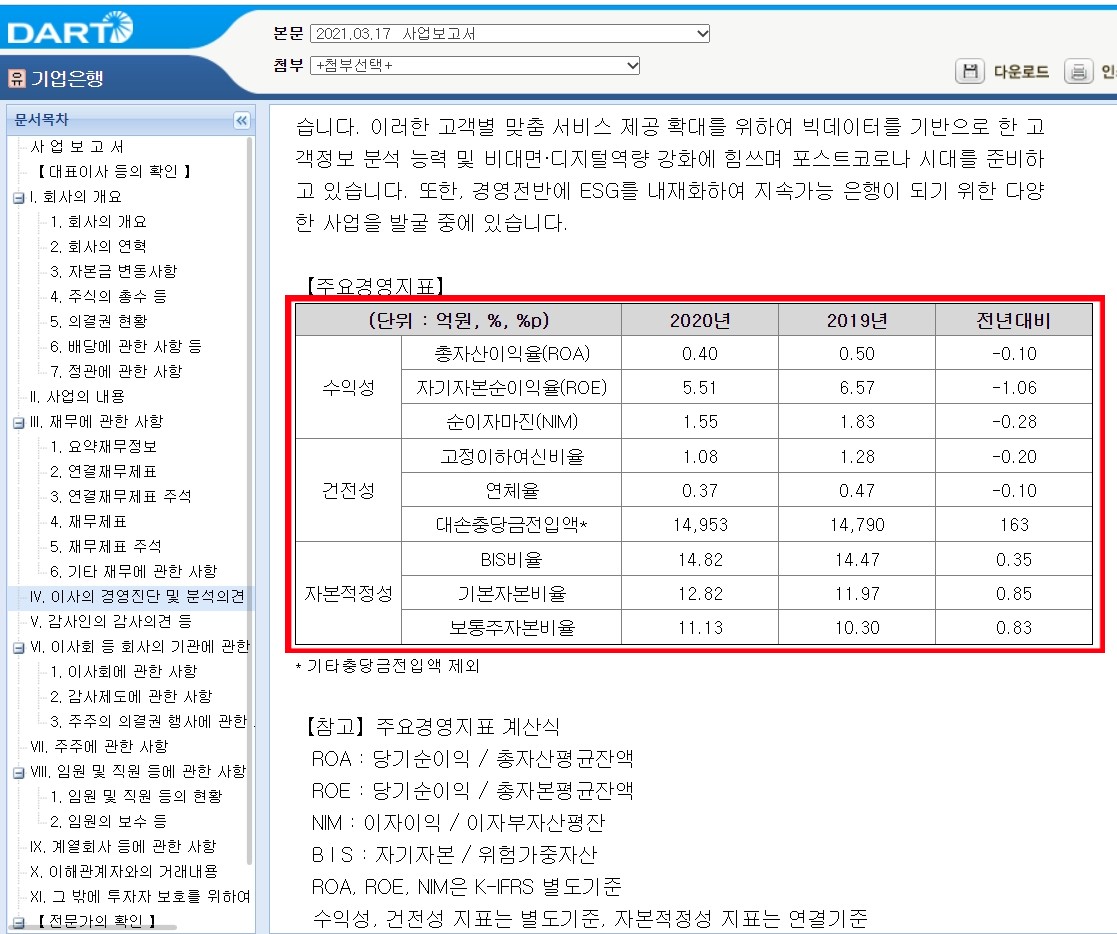 기업은행 주요경영지표와 KB금융/신한지주의 지표를 비교해보면 상대적으로 덜 매력적인 금융주인 것 같아요.