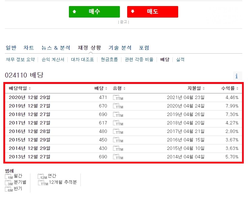 기업은행은 연배당(결산배당) 지급 - 1년에 단 한 번, 연말을 기준으로 하여 다음해 4월쯤 배당금 지급