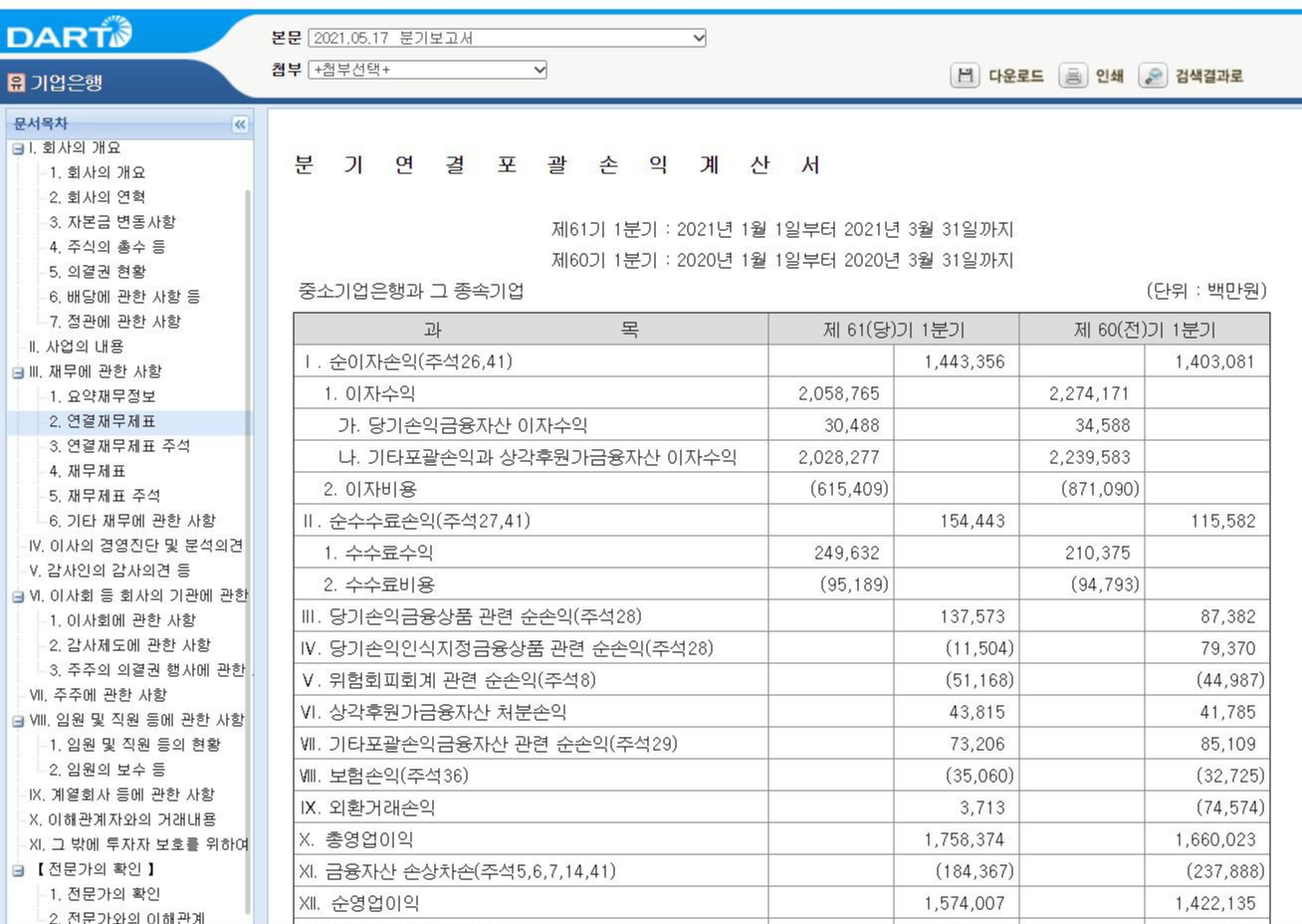 21년 1분기 기업은행은 돈을 잘 벌고 있을까요?!