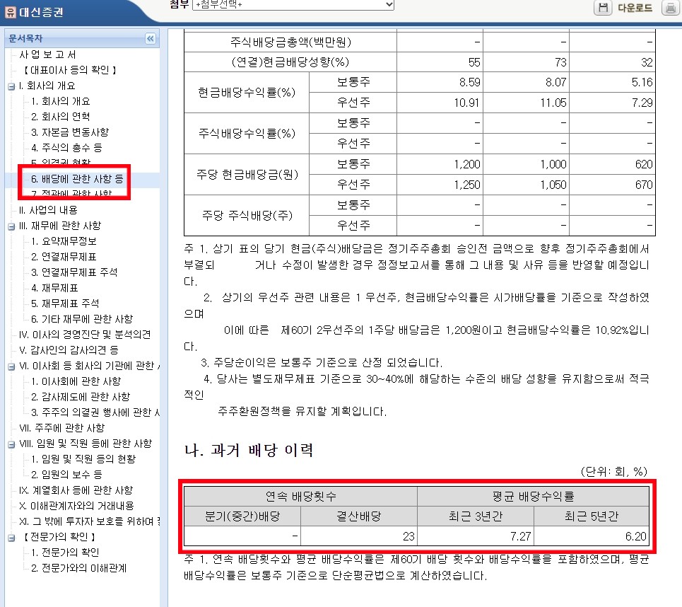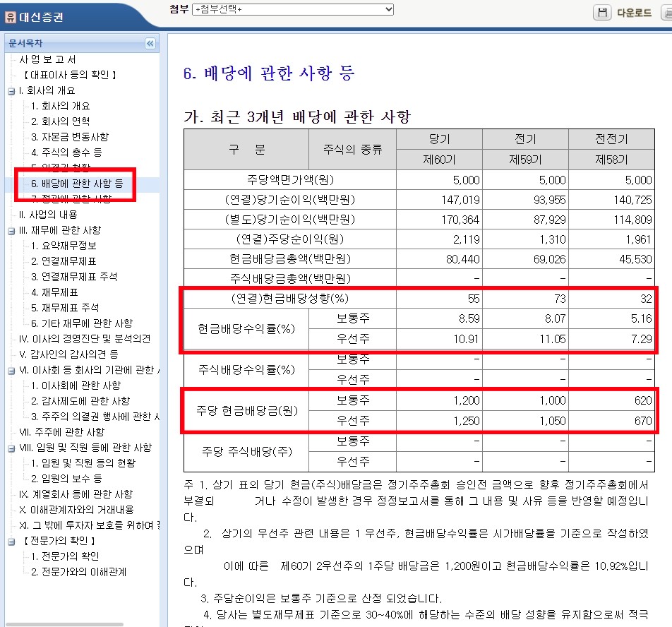 다시 본론으로 돌아와서 대신증권우 배당에 관한 사항입니다.