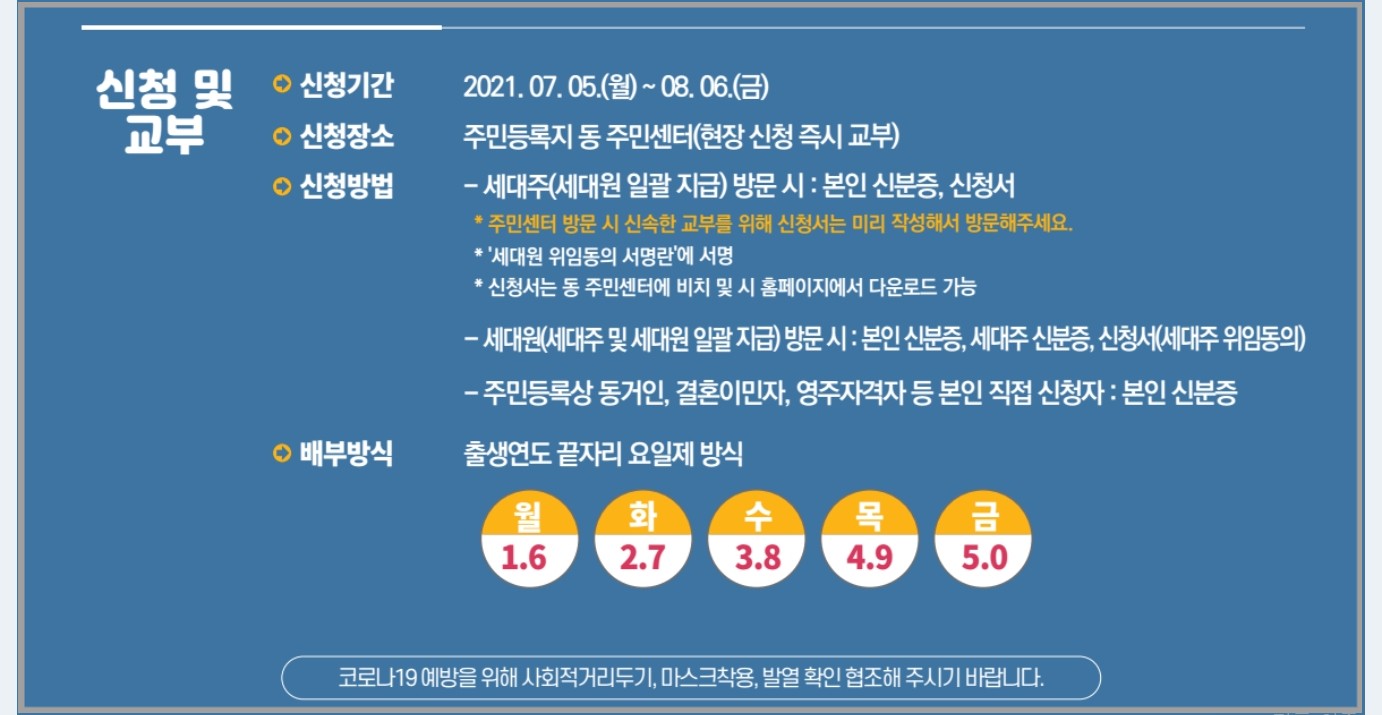 그리고 세대주가 세대원 재난지원금을 일괄 신청할 때는 위임동의서를 작성해서 함께 지참해주세요.