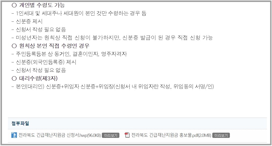 전북 긴급재난지원금은 개인별 수령 가능하세요.